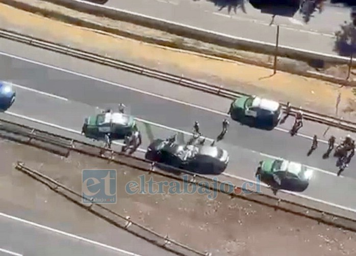 Los delincuentes fueron detectados en el cruce con la Autopista Los Libertadores, iniciándose un seguimiento a distancia al cual se unió personal policial de la comuna de Colina.